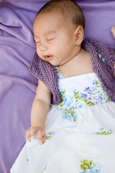 Adorable! That is gorgeous, the dress, the shrug and of course the baby.